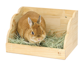 かこわれて安心足元がメッシュスノコで衛生が保ちやすい木製のベッドです。牧草を敷いて足元ふっくら。幼いうさぎ等では居場所の近くにある牧草を食べようとするので牧草を食べるトレーニングにも活用できます。
